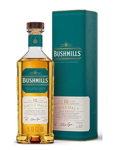 Bushmills 10 Years Old és un whisky irlandès single malt destil lat tres vegades i envellit durant almenys deu anys en bótes de bourbon i xerès. Aquest procés de criança aporta equilibri, suavitat i un perfil aromàtic viu i atractiu.